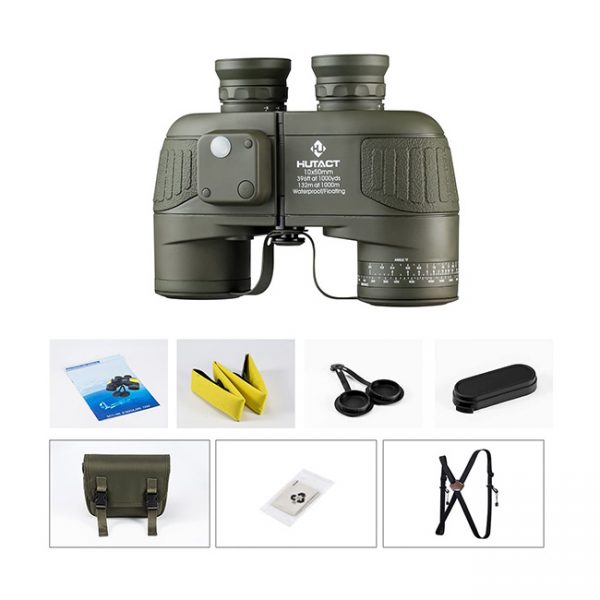 HUTACT 10×50 Military Binoculars, for Adults Compact Bird Watching, Built-in Compass and Range Finder, Large Field of Vision, BAK4 Prism FMC Lens Suitable for Hunting, Cross-Country and Travel