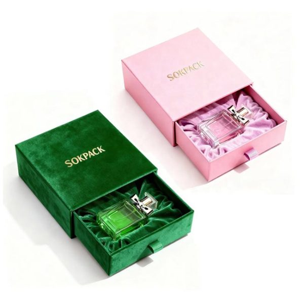 Custom Perfume Rigid Box with Flocked Ribbon Handle Luxury Gift Packaging