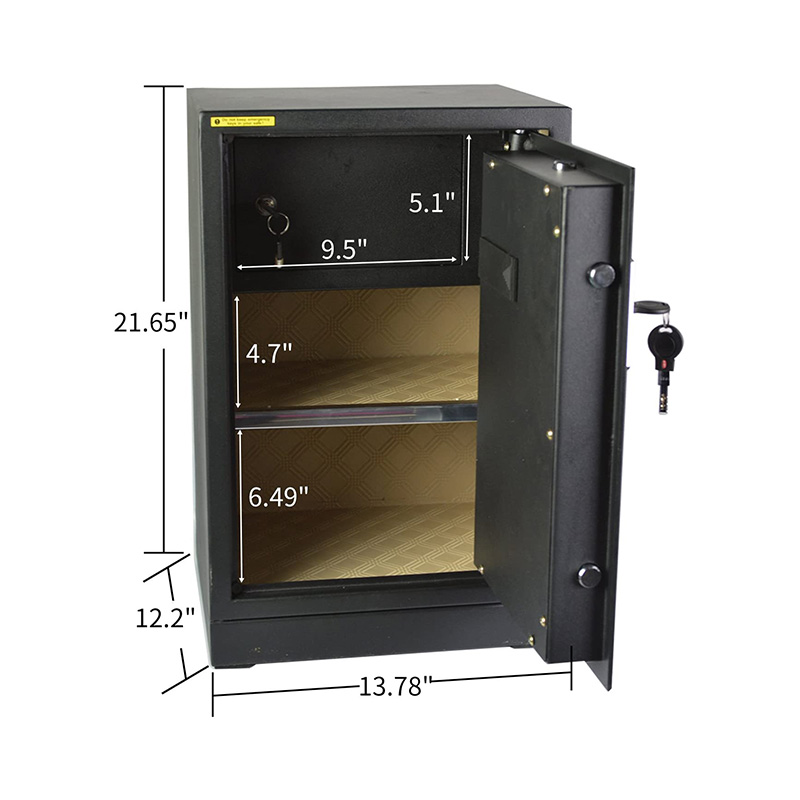 This double lock safe has everything you need to protect your valuable items from theft. It is compact to easily fit in a corner or in a closet, but still provides enough room for essential documents and keepsakes. It is designed for double lock for security. You need use your fingerprint or PIN with the master key together to open the safe. Whether it’s the paper and documents that are hard to replace or the memories and photographs that never can be, the items most important to you will always be safe inside.
