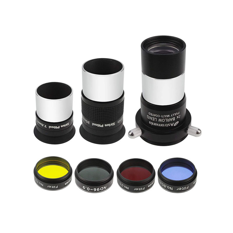 Eyepieces: Two high grade 1.25 inch Plossl Eyepieces in focal lengths of 7.5mm, 20mm for viewing at different magnifications. The filters included in the set can be screwed into the barrel of the eyepieces at any time.