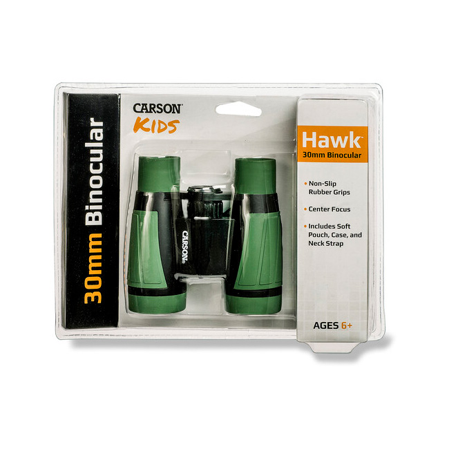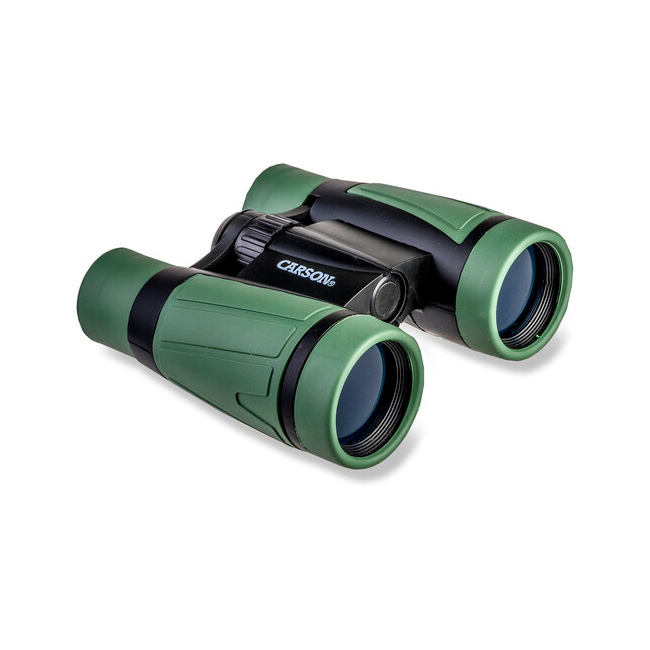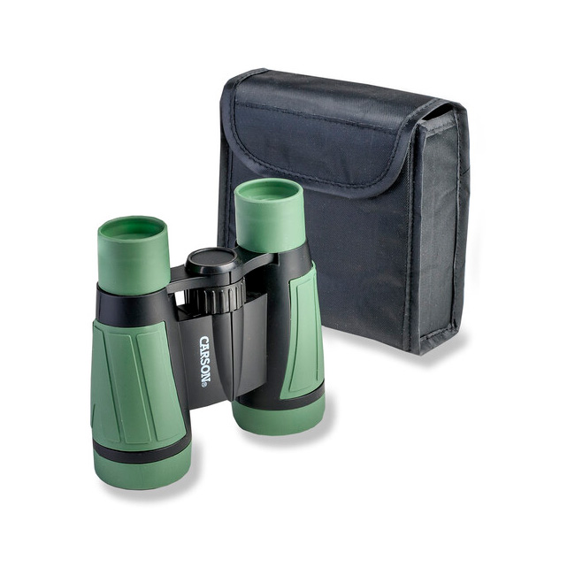 Carson’s 5×30 Wild Cat Prism Binoculars with 8.2-Degree Angle of View are deluxe, 5×30 binoculars with a distinguished kid’s camo design, durable and made for outdoor events, sports, bird-watching, and camping.