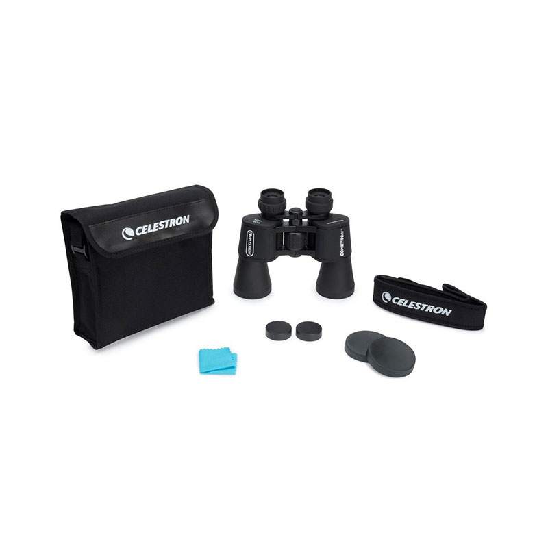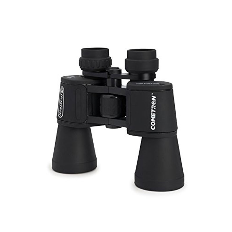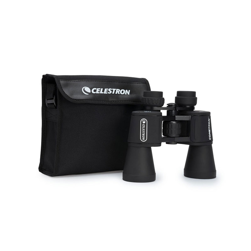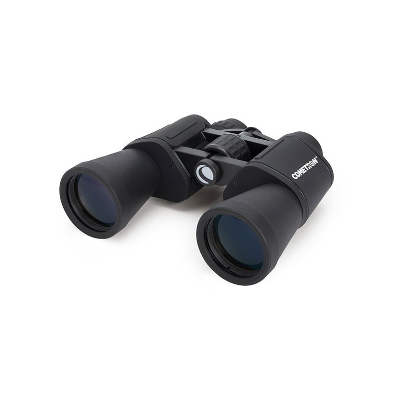 Get ready for the next awe-inspiring comet with a pair of sleek, portable Celestron Cometron 7×50 binoculars. The large 50 mm objective lenses and multi-coated optics offer amazing light-gathering capabilities that bring celestial objects into bright, sharp focus, making them ideal for comet watching, stargazing, and viewing craters on the Moon. Cometron 7×50’s wide field of view lets you explore expansive swaths of the sky to quickly pinpoint exactly the object you want to see, then keeps it in your sights without constant movement. Cometron 7×50’s rubberized aluminum housing is durable, lightweight, and tripod adaptable for extended comfort during long stargazing sessions. The binoculars come with a wide neck strap and a carrying case for security, portability, and grab-and-go convenience