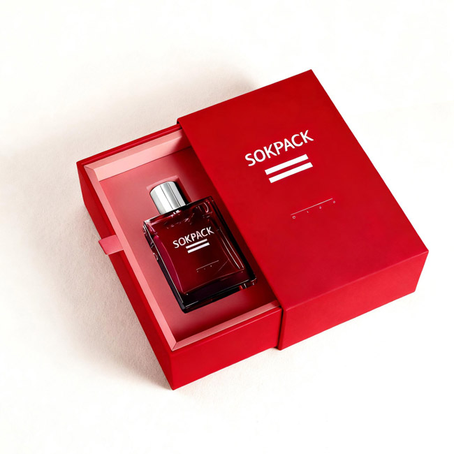 Custom Perfume Pull-Out Rigid Box with Flocked Insert & Ribbon Handle Luxury Gift Packaging Shipping Box