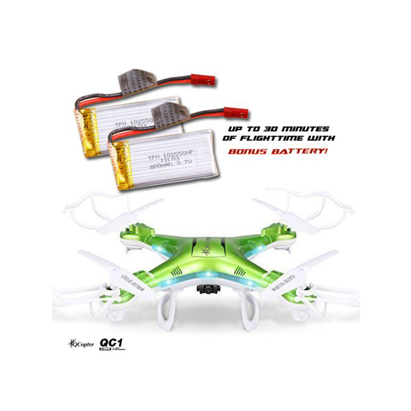 QCopter QC1 Drone Quadcopter with HD Camera LED Lights Green Drones BONUS BATTERY 2X FlightTime