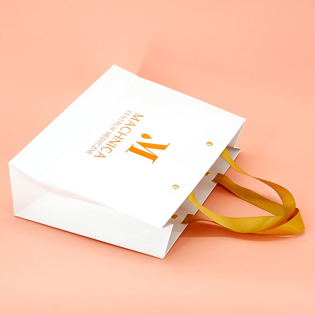 Gold Foil Stamping Luxury Shopping Gift Packaging Bags with Ribbon Handle