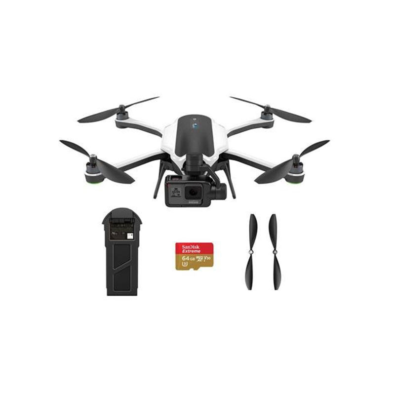 GoPro Karma Quadcopter – Karma Controller – Karma Stabilizer – Karma Grip – Karma Charger (US-Style) – Flight Battery – 6x Propellers – Karma Mounting Ring – Case – HERO5 Black Action Camera – Frame – Rechargeable Battery – Curved Adhesive Mount – Flat Adhesive Mount – Mounting Buckle – USB Cable – GoPro 1 Year Warranty – Bundle Includes: – 64GB MicroSDXC U3 Card – Propellers for Karma Drone (2x Clockwise; 2x Counterclockwise) – Spare Battery for Karma Drone