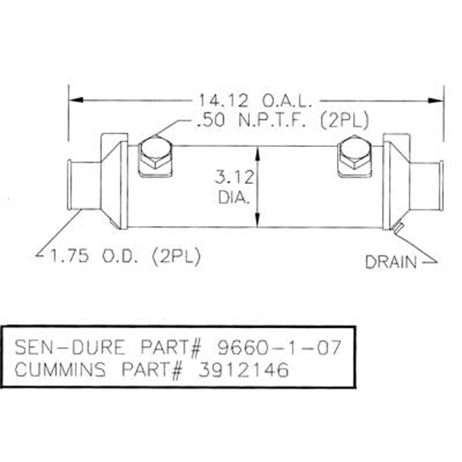 Seakamp Cummins 3912146 CN Oil Cooler. Aftermarket 10 in. oil cooler directly replaces Cummins 3912146.